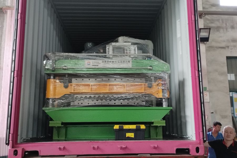 In 2023-8-7, we trained the client to change the cutting blade. Today we shipped this J Ribs & Corrugated Double Layer Roll Forming Machine out.