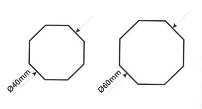 Outer diameter (e.g. 40mm, 60mm, 70mm, etc.)