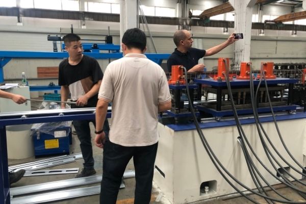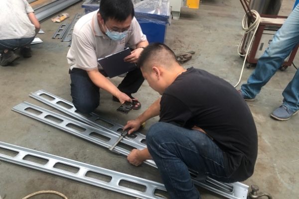 SGS is testing the metal shutter door machine with our engineer.